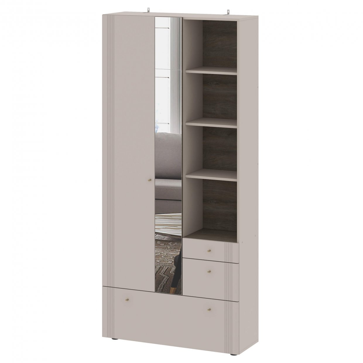 Цвет корпуса: Дуб Венге, Цвет Фасада: Дуб Млечный Высота: 2000мм, Ширина 1000мм, Глубина 365 мм, Левое (зеркало слева)/правое (зеркало справа) исполне